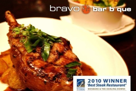 An unforgettable chargrill dining experience for two people Choose any two main courses Side or salad each Option to add a Bottle of MDV Black Pearl Barossa Shiraz Choice of two delicious desserts Queensland's Best Steak Winner 2010 82% of people LOVE Bravo...