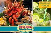 Entrée platter to share. Includes cheese bread, cassava chips and kibe (beef croquettes) Massive seafood platter to share. Includes king prawns, soft shell crab, calamari rings, oysters, fish fillet, prawn skewers and oysters Choose a glass of beautiful Sirromet wine, Brazilian beer or soft...