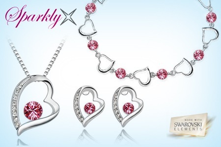A Charming Valentine’s Day Delight! $29 for a Stunning Pink Swarovski Elements Crystal Love Heart Necklace & Matching Earrings including Nationwide Delivery + Bonus Voucher! ($160 Value)