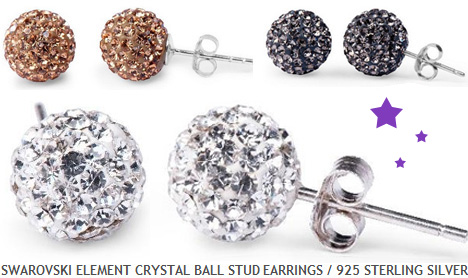 Swarovski Element Crystal Ball Sterling Silver Earrings. Only $35 for 3 Sets – White, Grey and Bronze – Delivered Australia Wide. Worth $267, save 87% Perfect Xmas gift; Includes Velvet Pouch; Use up to 12 JigoPoints