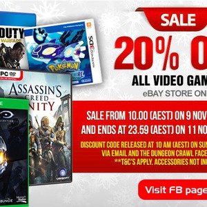 Save as much as 20% off on video games at Dungeon Crawl. They have the best selection of popular games and they also have the cheapest prices anywhere else even before the discount. Imagine how much you can save with this deal. They are also quick and reliable and they make sure you are satisfied with your customer experience. I got myself the Halo Master Edition for only $57 and the price is really cheap compared to other online sources. The sale is happening in their eBay store and you can also check them out if you're looking for the best games in the market.