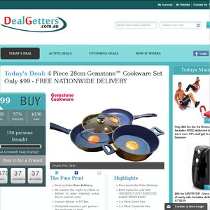 Wherever you are in Australia, deal getters will deliver to you free of charge this 4 piece Gemstone Cookware set. Originally at $229, you can now avail of this wonderful product at only $99. That more than half off the original price. With the latest in non stick technology, this revolutionary cookware set lets you cook and fry even without using oil, butter or sprays. The Multi-ply technology ensures that heat is distributed evenly so you'll cook perfect meals all the time. LImited stocks available so hurry and don't be left out of the hunt for a bargain. Check out deal getters and get yourself the most practical, most healthy deal.