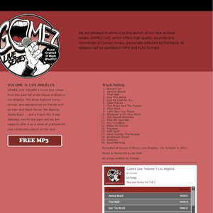 Enjoy great music from Gomez the Band recorded live at the House of Blues in LA . Gomez is giving free copies of their album GOMEZ Live in LA free. You can get it from their official website http://www.gomeztheband.com/liveseries/ and enjoy an amazing 320 kbps sound quality. The album features around half their biggest hits including Bring It On, Hamoa Beach, That Wolf, See The World, Just As Lost As You, Little Pieces, The Place And The People and many more.