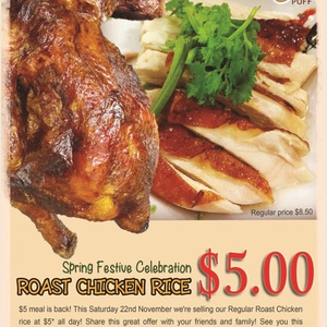 Saturday, November 22, is the day to head to Mr Loys Puff in Melbourne. The chicken rice which usually goes for $8.50 is being offered for just $5. The price is for both eat-in or takeaway but subject to availability of stock. Mr Loys Puff is on 452 City Road, South Melbourne and the place is famous for its signature curry puffs.