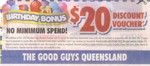 The Good Guys are giving a birthday bonus promotion of discount for $20 off on your purchase with no minimum spend! All you have to do is get their catalogue and take the voucher from there, because they accept only original copies! Present it at the register and use it for only one transaction! The discount expires on the 4t of March 2013, so be quick to use it! It excludes iTunes, gift cards, Asko, Hoover & Falcon purchases. You can only use the voucher in store, not online, and can not be used in combination with any other offer from The Good Guys! Available in QLD stores only!