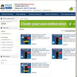 MR PC GEEK offers a great deal on a budget PC package called Intel Dual Core 3220/4GB/500GB/USB3/Win8 + shipping for $445. This package includes Brand New Processor: Intel Dual Core G3220 @ 3.0GHz RAM: 4GB 1600Mhz DDR3 RAM [Kingston], Hard Drive: 500GB 7200RPM SATA3 HD [Seagate], Motherboard: Gigabyte B85M-HD3 Motherboard with USB3.0 Ports, Graphics: Intel HD Graphics Graphic Outputs: VGA/HDMI/DVI Outputs, Optical Drive: 24x DVD-RW Burner [Samsung], Sound: 5.1 Channel High Definition Audio, Case: Black/Silver Ultra-Slim Case with Mobile Base [Honli], Powersupply: 620W Heavy Duty PSU [Honli] Fan: 80mm Case, Operating System: Depends on package and Warranty: 12months Parts & Labour Warranty [Return-to-Base]. We provide Tax Invoice, Manuals and Driver Software for all purchases. All PCs are tested before shipping for performance and stability.
