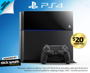 The console for serious gamers, the Sony PlayStation 4 500GB is selling for $468, and its postage and handling is completely waived. And for good measure, a $20.00 Dick Smith voucher will also be given away with the Sony PlayStation 4 console purchase. Die-hard PlayStation 4 fans will salivate at the new model's DualShock 4 controller, 500 GB storage, Blu-ray drive, and the many superb features that make Sony PlayStation their gaming console of choice. Pair this spanking new PS 4 with the Wolfenstein: The New Order, also with free shipping, for $40.00. Terms of this Catch Of The Day deal, and full product specs are described on this page: http://www.catchoftheday.com.au/product/sony-playstation-4-500gb-console-293644/.
