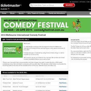 Grab yourself and your friends this amazing offer on the best comedy tickets ever. There will be an international comedy festival in Melbourne in a few days. Ticketmaster are offering the tickets for the event at $20 only. Bring your friends, family, girlfriends and be entertained in to a rib breaking concert. You will laugh at the best jokes and comedy acts and stories ever. This is an international event and the best comedians from all over the world will be there to ensure you have the best and the most interesting day. This offer end in 20 hours. There is a small transaction fees of just $5.