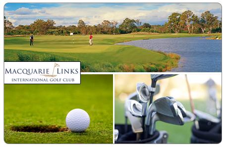 Highlights Just $99 for two people to play a round at the beautiful Macquarie Links International Golf Club Take a look at their website Get around the course in your own motorised cart Look the part with a club logo golf cap for each of you to keep Putt at Sydney's number one...